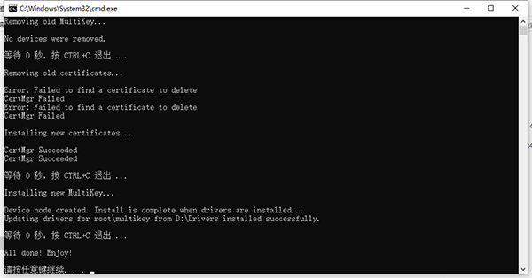 10、再以管理员的身份运行"install.cmd"安装驱动,显示成功即可;