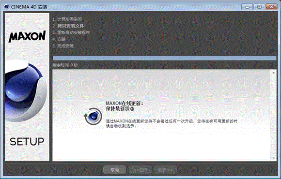 5、Cinema 4D R16正在安装,耐心等待一下;