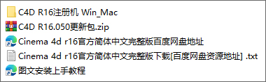 1、下载解压,得到maxon cinema 4d r16官方简体中文完整版,以及注册机和更新包;