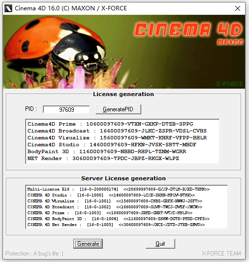 3、需要输入序列号的时候,运行注册机,点击Generate,此时序列号已经自动复制了,到C4D中点击Paste粘贴就可以了,注意输入Studio版本的序列号;