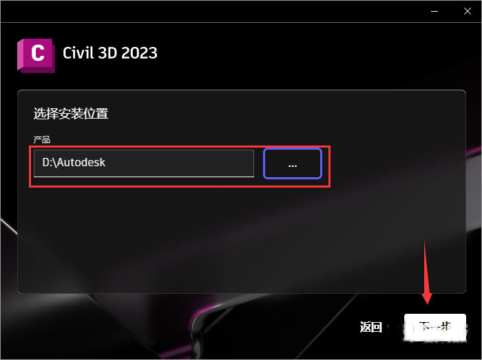 2、双击Autodesk_Civil_3D_2023_Chinese_Simplified_Win_64bit_dlm_001_002.sfx.exe开始自解压安装【默认C:\Autodesk\】;