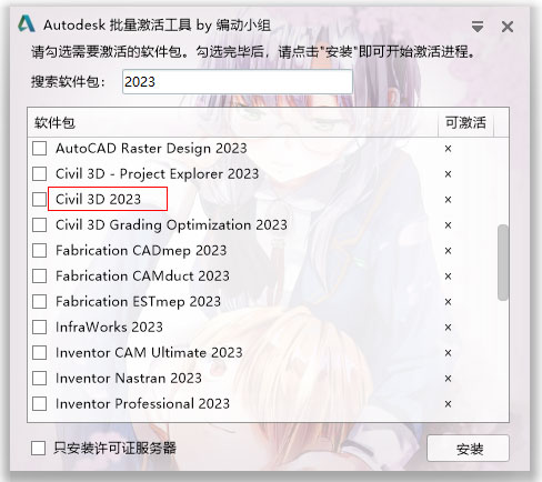 10、找到Civil 3D 2023勾选,然后安装;