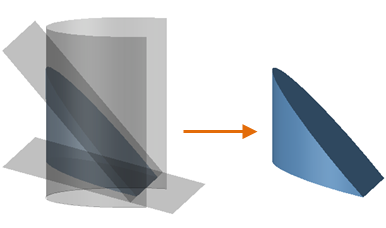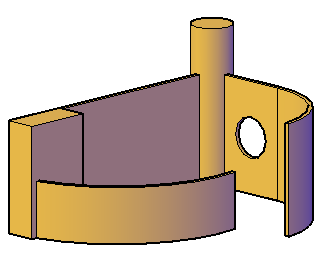 使用 SURFSCULPT 命令将完全封闭体积的一组曲面转换为三维实体。在下图中,一条拉伸圆弧与两个平面曲面相交,从而围成一个“无间隙”体积。