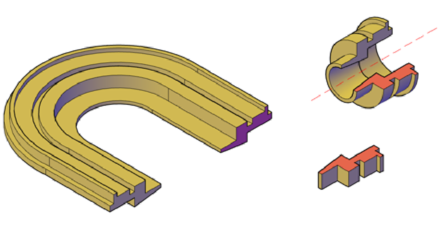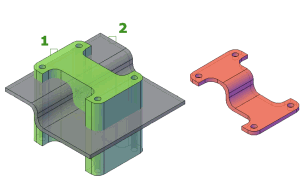还可以使用布尔交集运算组合三维实体。下图显示了从对应于支架的两个轮廓的闭合多段线拉伸的两个实体。然后,拉伸通过相交其体积进行组合。