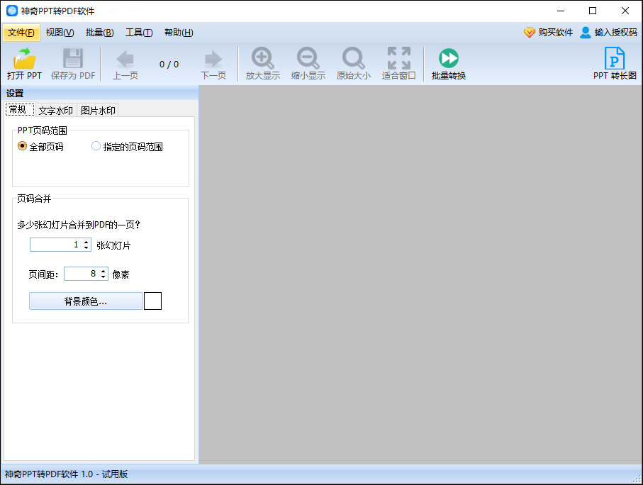 另外,神奇PPT转PDF软件可以将多页幻灯片合并为一页,还可以为每一页添加文字水印和图片水印。