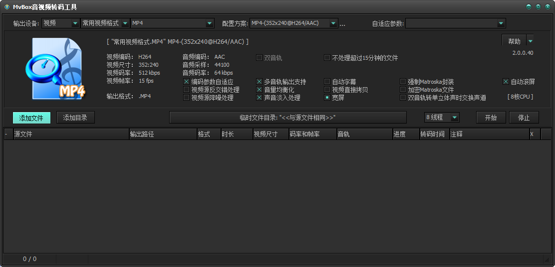 输出设备下面显示了编码方案的具体参数,在开始转换前,方便用户核实编码参数是否正确。