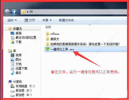 1、此绿化版:下载后,解压文件,运行一键绿化就可以正常使用。
