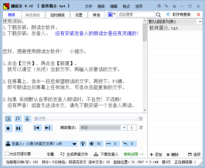 朗读女绿色版使用说明