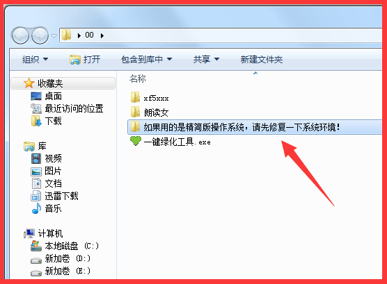2、请进入【如果用的是精简版操作系统,请先修复一下系统环境!】这个文件夹。