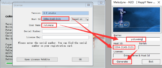 7、打开软件包中的注册机,将界面中的Name和Id复制到注册机中,再带年纪Generate生成激活码;