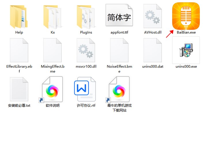 2、进入文件夹之后点击baibian.exe文件。