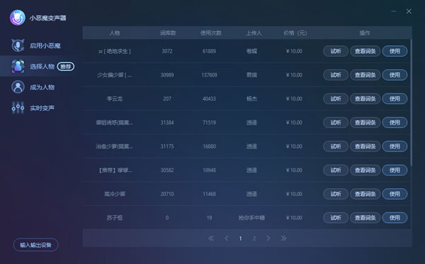 小恶魔变声器官方版是一款有趣好玩的电脑变声器软件,软件内置海量优质的萝莉,御姐,直男,青年,大叔等音色任您挑选,用户可选择自己喜欢的音色进行语聊,也可将其带入游戏中并使用自己的音色博取他人的保护和同情,是游戏中的必备神器。