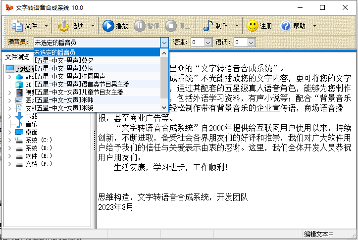 6、如果你需要将文档朗读,可以选择这款文字转语音合成系统。