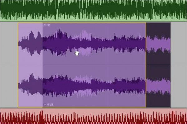 现在有了音频块透明度,你可以清晰地看到你在移动什么,移动了多少。所有MIDI和音频块在时间轴上都显示为半透明状,正如截图4所示,波形在底下那层实时进行更新。