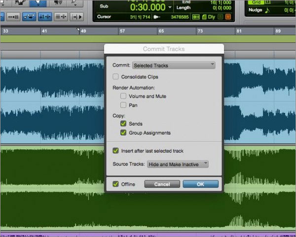 -你可以在任何轨道上敲定音轨,甚至可以细致到任一音轨插件链路中的任何一个插件,由此你可以选择带某些插件渲染导出,同时你也可以选择将编组和母线发送复制到新敲定的音轨上。