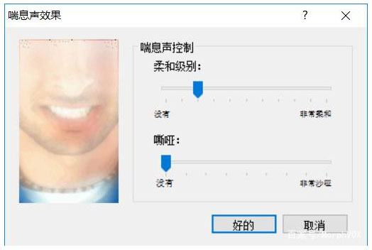 还有就是音效中可以启用的是喘息声,主要调整的是【柔和级别】,一般建议是两格,如果你的声音比较粗可以适当的高一点。但不可过高,过高会导致声音很闷鼻音很重,如果声音比较细的话也可以不用这个功能。