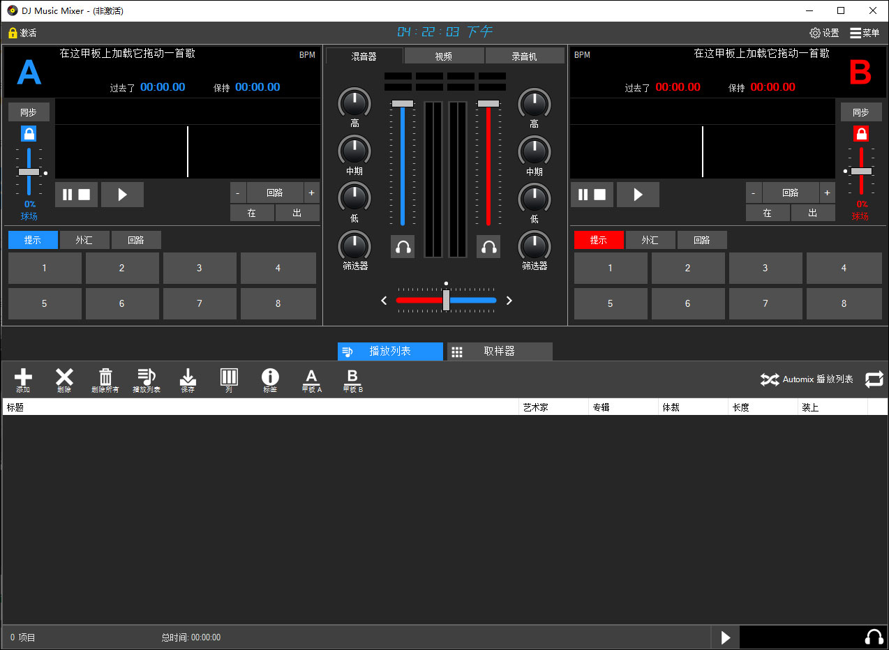 3、你可以加载一首歌曲到软件播放,通过内置的节拍器以及混音器就可以将歌曲转换为DJ模式。