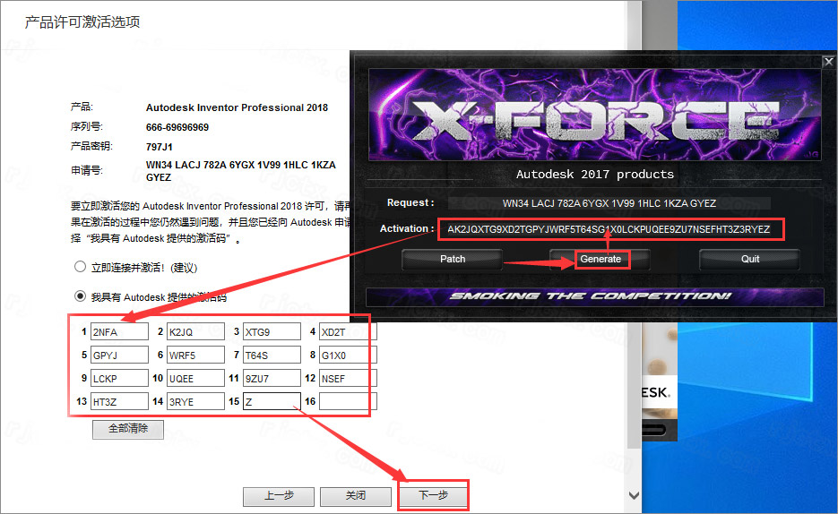 ① 点击【Generate】生成激活码