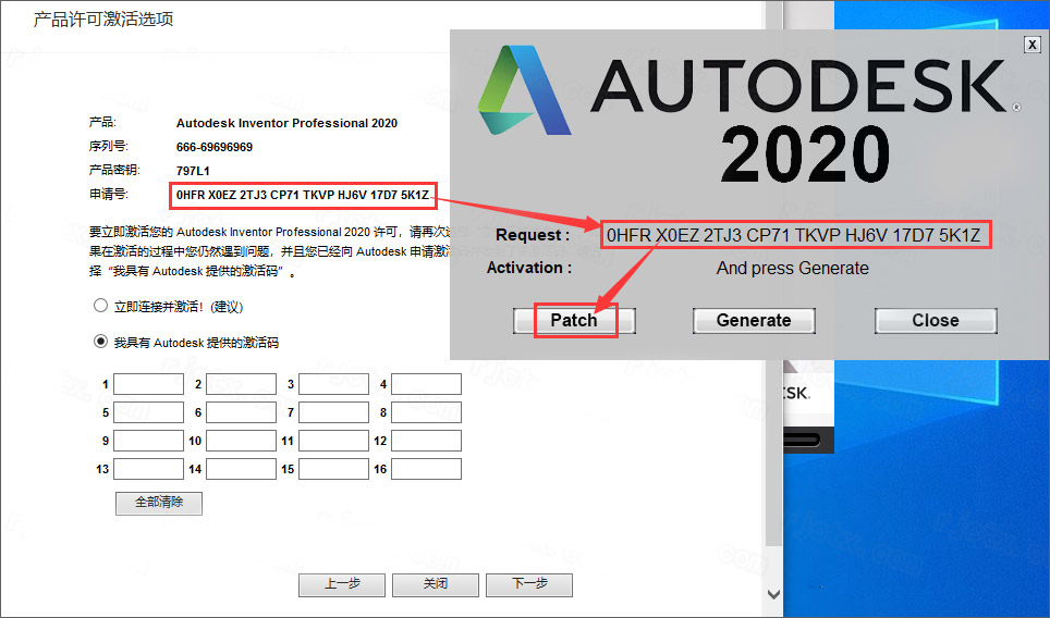② 使用快捷键“Ctrl+C”复制【Activation】后框中的激活码