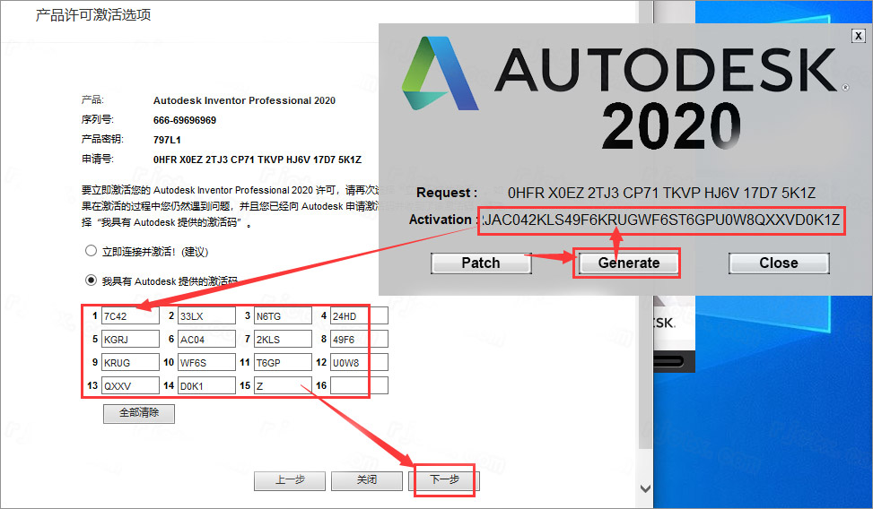 1、下载解压,得到autodesk inventor professional 2020中文版和注册机;