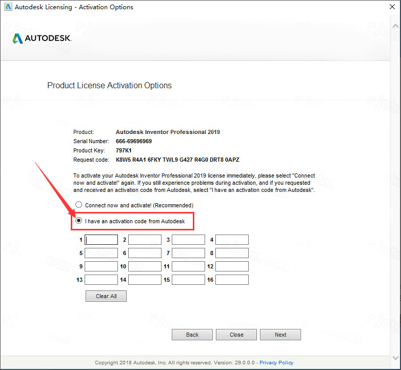 7、选择【我具有Autodesk提供的激活码】(不要关闭此界面)