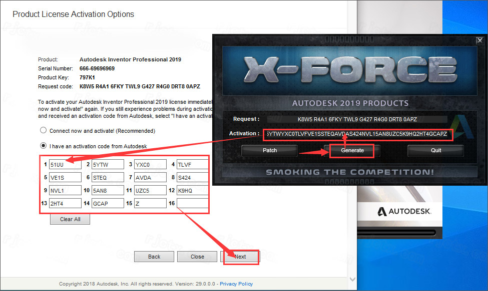 ① 点击【Generate】生成激活码。