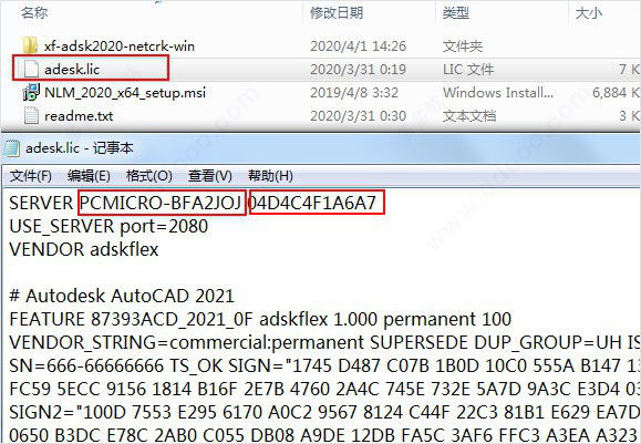 8、右键记事本编辑许可证文件adesk.lic里面填上您的计算机名和MAC地址,编辑好之后保存;