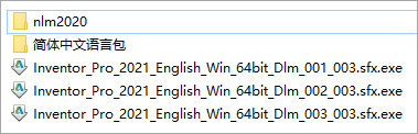 2、下载解压,得到inventor professional 2021原程序和补丁文件,首先运行"Inventor_Pro_2021_English_Win_64bit_Dlm_001_003.sfx.exe"开始安装原程序;