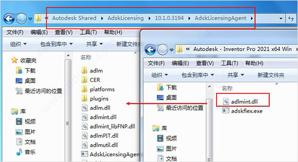 7、再将xf-adsk2020-netcrk-win文件夹下的“adlmint.dll”复制到软件许可证管理器目录下;