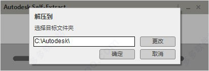 3、再次解压,默认为C:\Autodesk\;