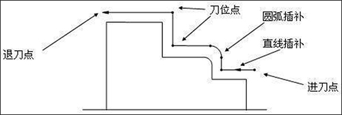 刀具轨迹是系统按给定工艺要求生成的对给定加工图形进行切削时刀具行进的路线,系统以图形方式显示。刀具轨迹由一系列有序的刀位点和连接这些刀位点的直线(直线插补)或圆弧(圆弧插补)组成。