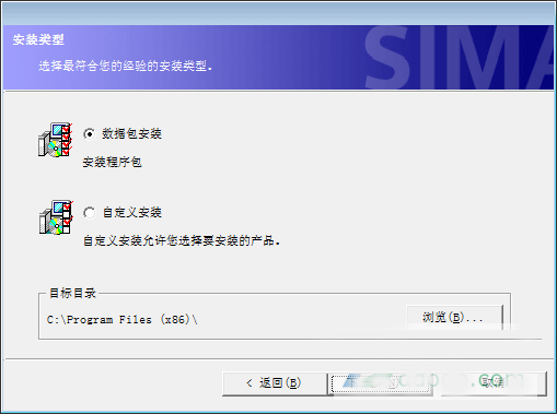 2、安装类型,此处选择数据包安装,目标目录建议为默认,点击下一步
