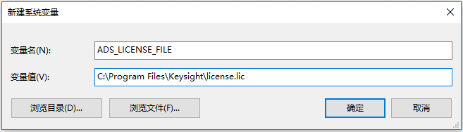 变量值:C:\Program Files\Keysight\EEsof_License_Tools\license.lic