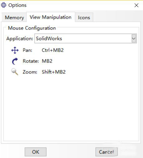 4、更改为Solidworks的操作方式:更改之后,移动零件的鼠标操作为:Ctrl+鼠标中键