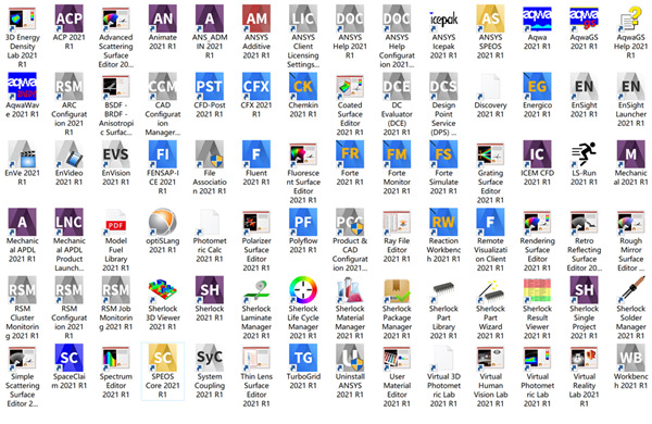 10、安装完成后,ANSYS Products 2021包含以下程序;
