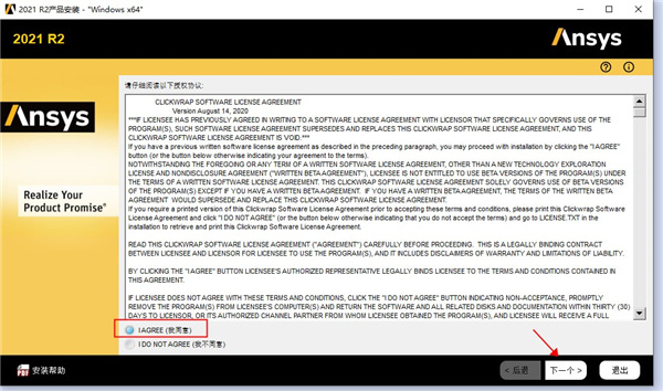 2、点击Disk1目录中的setup安装ANSYS Products 2021,点击安装ANSYS 产品;
