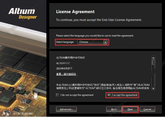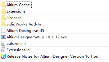 2、将AD16.1.12.iso文件夹解压,双击“AltiumDesignerSetup_16_1_12.exe”开始安装。