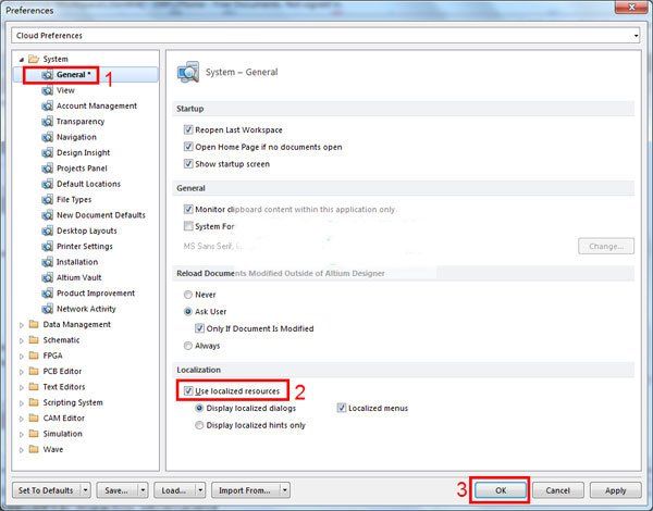 6、接下来是设置中文,点击菜单界面的“DXP”--“Preference”--“system”--“general”--“use localized resources”,再重启一下,打开软件就是简体中文了。