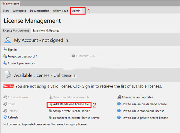 3、安装完成后,运行altium designer 16,打开myaccount——Admin——Add standalone license file.