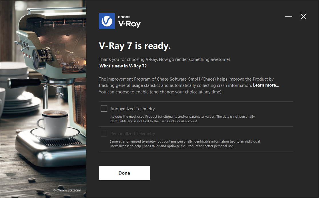 V-Ray 不仅是渲染器。内置的合成和灯光混合让您直接在 V-Ray Frame Buffer 完成后期处理,无需其他软件。