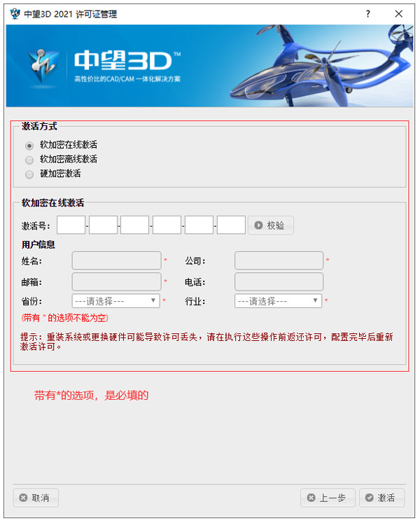 10、支持软加密在线激活、软加密离线激活和硬加密激活,输入激活码即可;