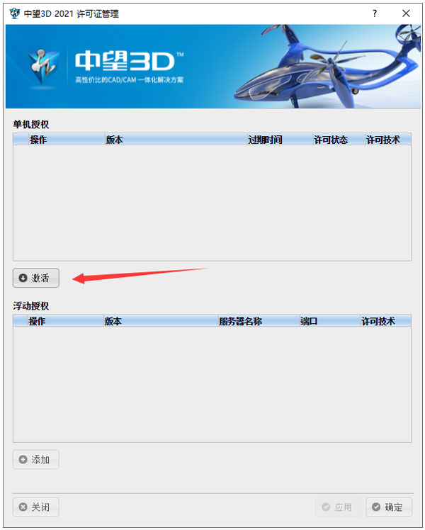 9、点击许可管理器,在单机授权下方点击激活按纽;