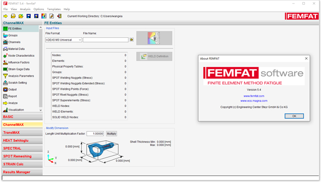 femfat5.4是ecs femfat系列软件的新版本,也是目前行业中专业的有限元疲劳分析软件,可以用于静态或动态负载的部件以及整体系统的疲劳强度分析,能够为用户提供如疲劳寿命、损伤以及安全系数等分析结果,让客户在早期产品开发阶段发掘减重的潜力,发现可能的薄弱环节。