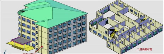在下图中执行【局部可见】命令选取组合模型中作为外部参照的二层,其他楼层对象均被隐藏,只有二层作为整体显示出来。