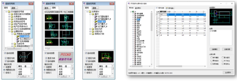 - PCCAD提供丰富的零件库。多视图,参数化驱动,直接插入图中,提高绘图效率。