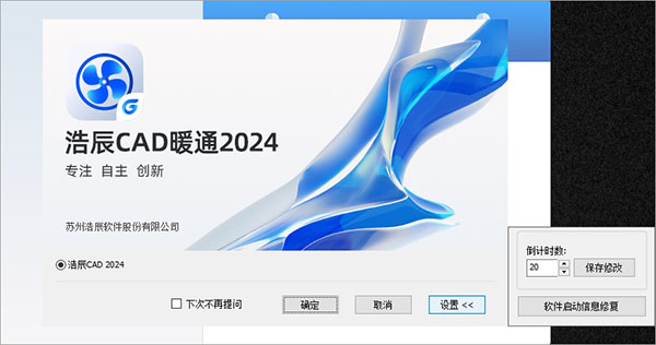 双击浩辰 CAD 暖通 2024 图标,在界面中有“设置”按钮,点击弹出启动设置界面,如下图。