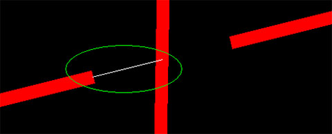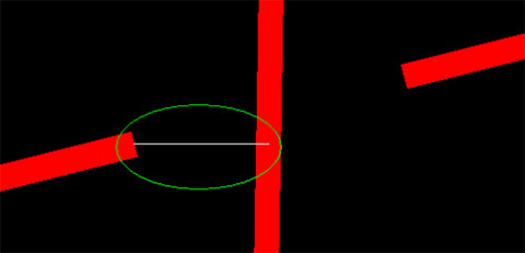 [断线距离]导线与其它导线相交时(非连接),相交处垂直断线的距离的一半,单位为:mm。如图: