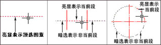 c、 光标沿快速绘图坐标系(QCS)的坐标轴方向移动到和最近的图素的交点,如下图。