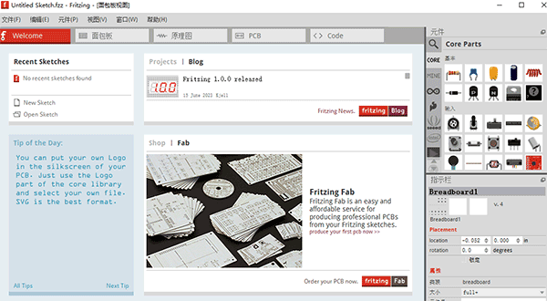 1、不断更新零件库Fritzing零件库现在在线存储在github上,并自动检查更新。这意味着您现在将在创建时获得新的零件(或修复)。