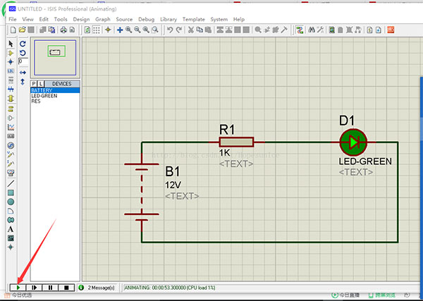 完事之后 当然要看看效果啦 这时候 可以点击仿真按钮了 如图 就可以看到你的灯已经亮了。